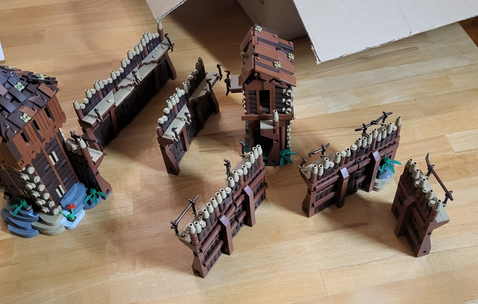 Ich habe die Burg ohne Palisaden aufgebaut. Fotos gibt es keine davon, das kann sich jeder vorstellen. (Aber ein MOC-Ausbau der Burg ist geplant und da gibt es auch wieder Fotos.)